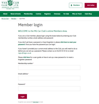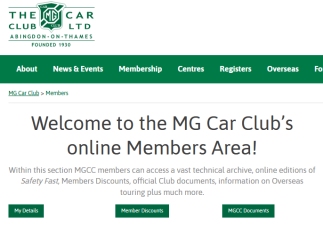 Member area on the MG Car Club website