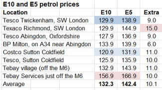 Looking at the prices of E10 and E5 on the petrolprices.com