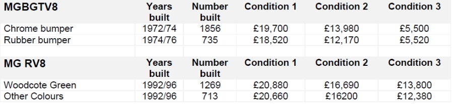 for a Condition 1 MGBGTV8 with more for an Exceptional or Concours