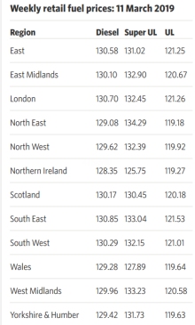 end of January 2019. The cost of diesel also dropped, by 7.3p