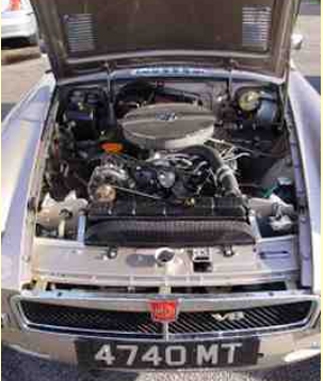 Alongside is a photo of the engine bay of Mike's MGB V8 Roadster