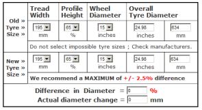 combinations will need to use the Tyre Size Change Calculator above