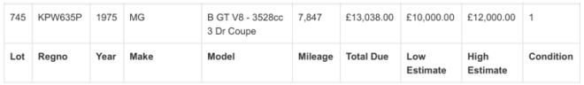 of the sale of an MGBGTV8 at the Morris Leslie classic car auction